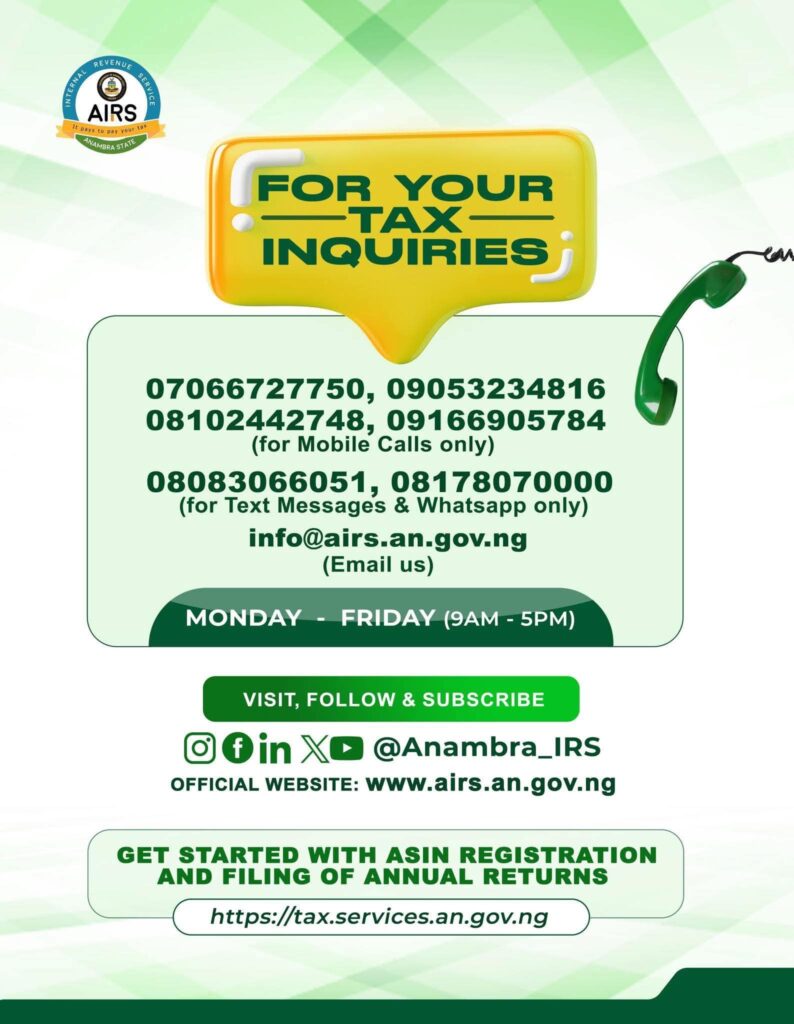📢 IMPORTANT TAX REMINDER – ANAMBRA STATE RESIDENTS 📢